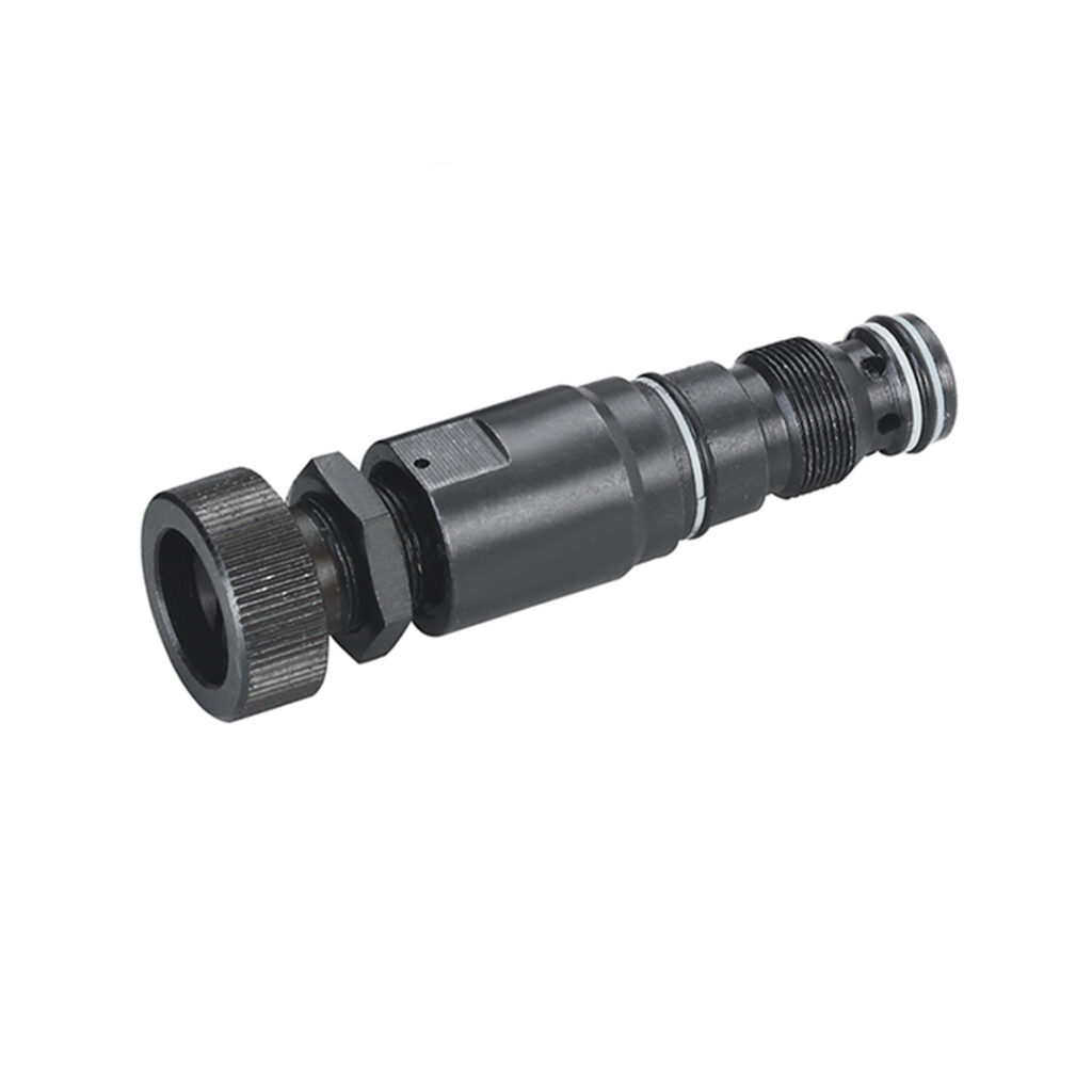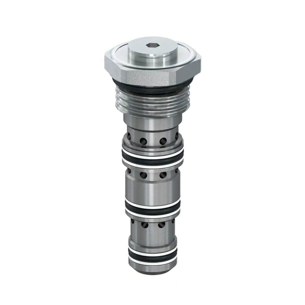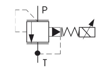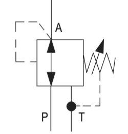 As válvulas reguladoras de pressão são usadas para ajustar a pressão máxima no circuito e protegê-lo de sobrecarga. A pressão do sistema determina a força de um pistão hidráulico ou o torque em um eixo de motor hidráulico.